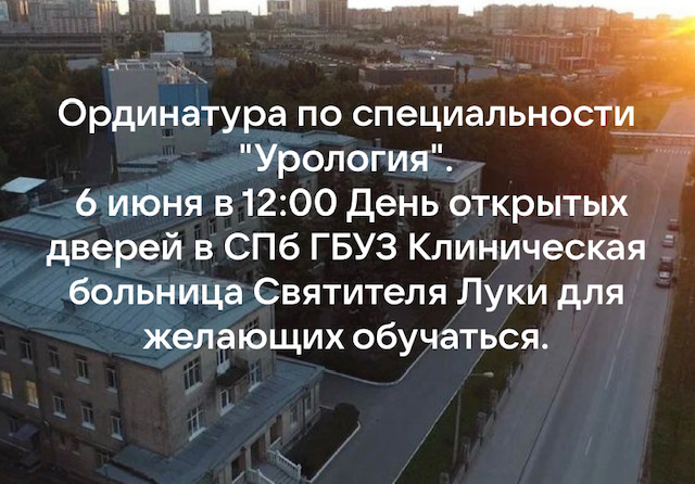 Практическая подготовка обучающихся  по специальности Урология будет проходить в Санкт-Петербургском государственном бюджетном учреждении здравоохранения Клиническая больница Святителя Луки.