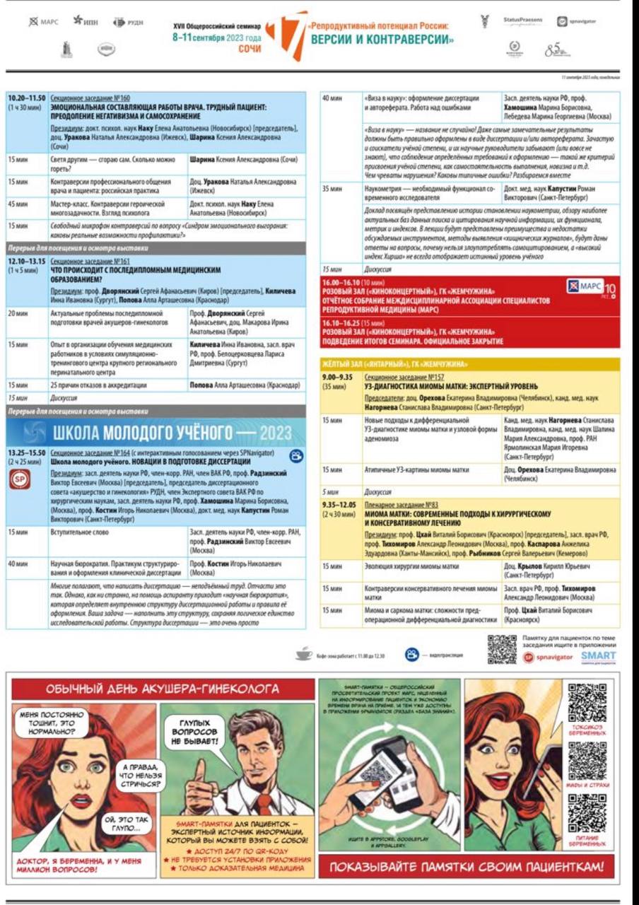 8-11 сентября 2023 года в Сочи проходил XVII Общероссийский научно-практический семинар «Репродуктивный потенциал России: версии и контраверсии».