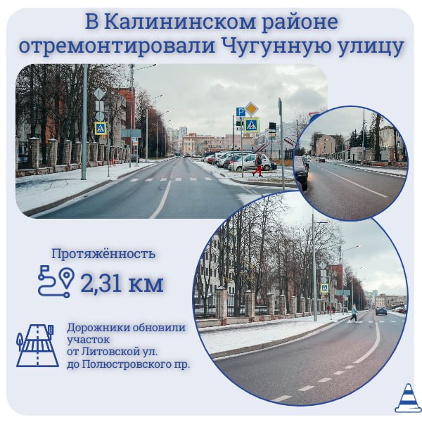 На участке Чугунной улицы протяженностью 2,31 км от Литовской улицы до Полюстровского проспекта обновили асфальтовое покрытие.