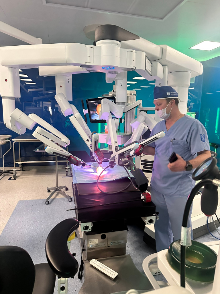 Гости посетили операционный блок, оснащенный робот-ассистированной установкой Da Vinci Xi, ознакомились с работой рентгенологического отделения и обсудили возможности МРТ, КТ- диагностики при лечении различных заболеваний.