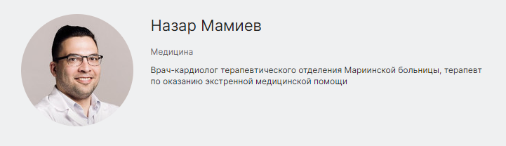 Врач-кардиолог терапевтического отделения Мариинской больницы, терапевт по оказанию экстренной медицинской помощи
